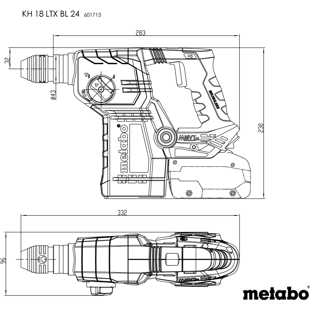 - Metabo VibraTech (MVT): integriertes Dämpfungssystem zur Reduzierung der Vibrationen zum Schutz der Gesundheit